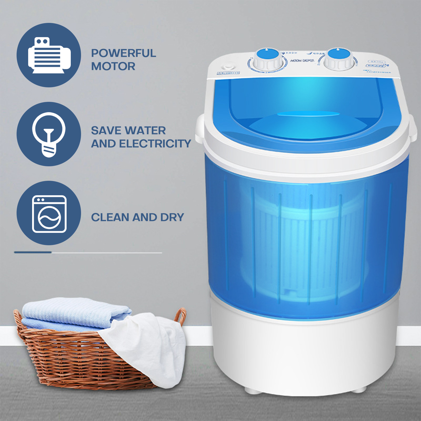 Geepas mini washing machine 35 kg capacity gswm6472. - Water Power and Time Saving. - 35Kgs Washing Capacity.